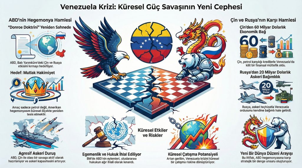 Son 20 yılda Çin ve Rusya, Venezuela ile derin stratejik bağlar kurarak ABD’nin bölgedeki etkisine karşı önemli denge unsuru oluşturdular. Çin, 2015 yılına kadar devlet bankaları aracılığıyla Venezuela’ya 60 milyar doların üzerinde petrol destekli kredi sağlayarak Latin Amerika’da eşsiz diplomatik ve finansal bağ kurdu.