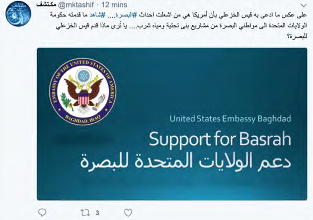 Birkaç sahte Twitter hesabı İran’ı Irak’ın su güvenliğini tehdit etmek ve ülkeyi sentetik uyuşturucu ile doldurmakla suçlamak için Iraklı aktivistler gibi poz verdi. Diğer bot hesaplar için ise Yemen’deki İran yanlısı Husilerin yerleştirdiği mayınların sivilleri öldürdüğünü vurguladı ve Rusya’nın Ukrayna’yı işgalinin küresel gıda krizine yol açacağı iddialarını destekledi.