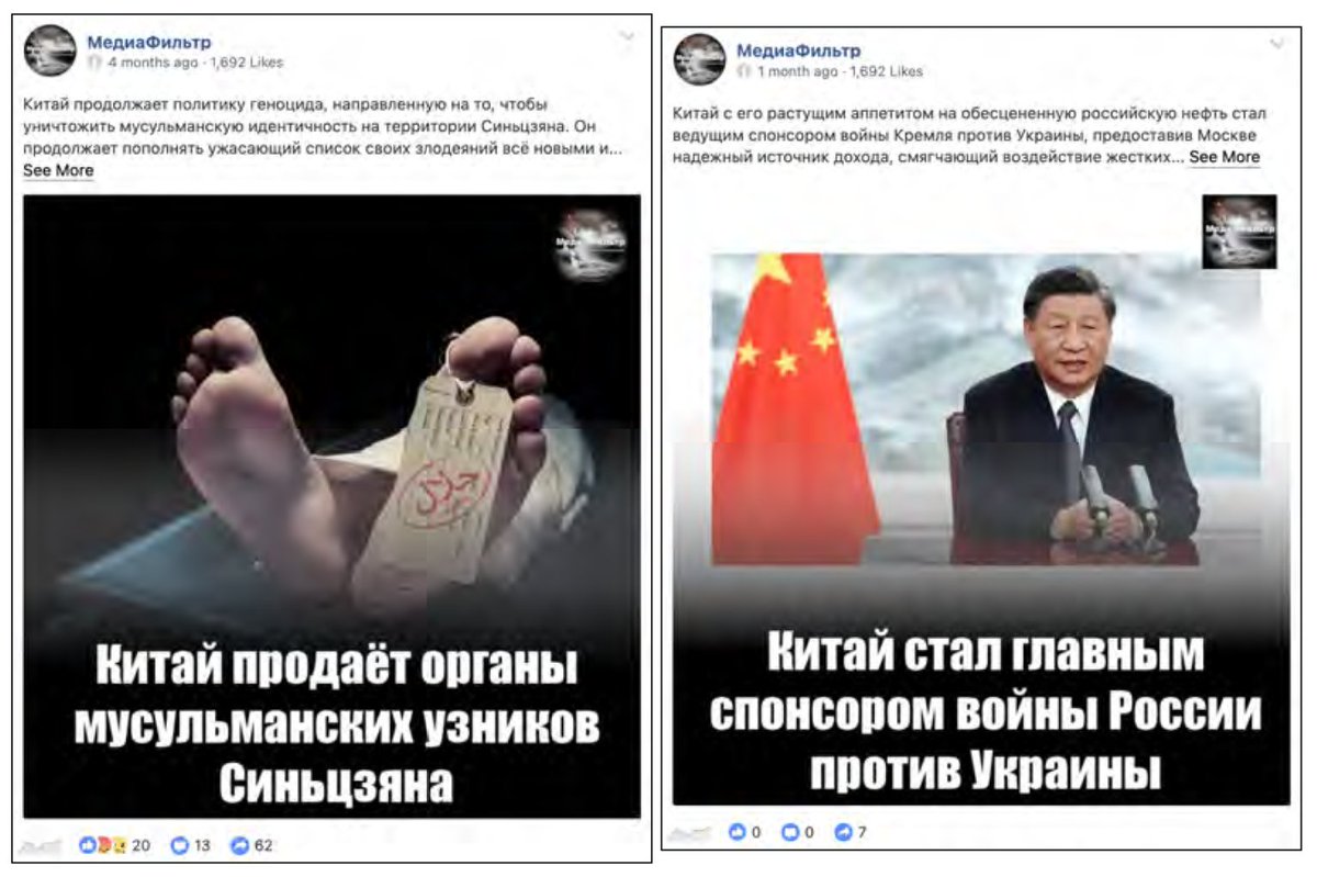 Gizli sosyal medya çalışma ekipleri sıklıkla Çin’in Rusya ile özellikle askeri konularda işbirliğine atıfta bulundu ve Çin Kominist Partisi’nin Kremlin’e gizlice silah sağladığı için Pekin’in Rusya’nın Ukrayna’yı işgalinden sorumlu tutulması gerektiğini yaydılar. Çin’in Rusya’ya Ukrayna savaşı için silah sağladığına dair bu sahte anlatı Batı’da da yayıldı. Ancak hızla çürütüldü ve şimdi Ukrayna Ordusu bile bunun sahte bir hikaye olduğunu kabul ediyor.