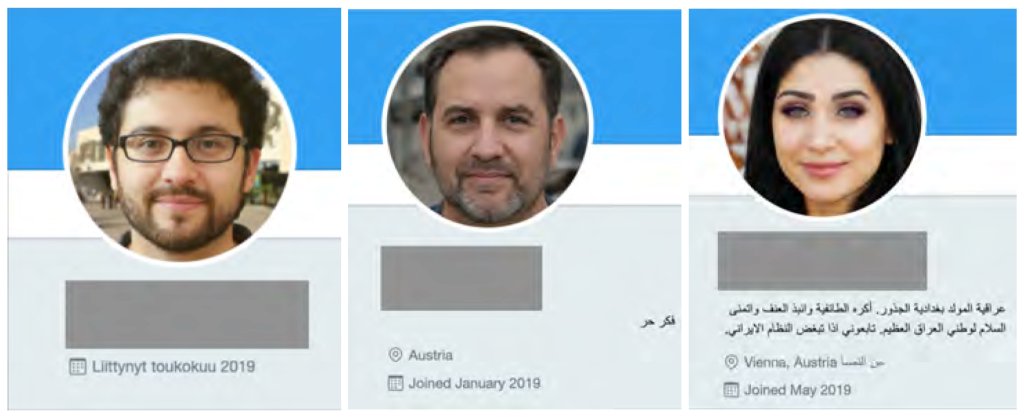 “Discoverer” adlı Iraklı bir adama aitmiş gibi davranan ve ağırlıklı olarak İran hükümetinin kabahatleri hakkında yayınlanan, yapay zaka (AI) tarafından oluşturulmuş sahte bir profil fotoğrafı kullanan bir Twitter sayfası vardı. Ancak Twitter hesabının arşivlenmiş versiyonları, Mayıs 2021’den önce, “ABD Merkez Komutanlığı’na ait bir hesap” olarak tanımlanan farklı bir profil fotoğrafı kullandığını ve konumunu “Florida, ABD” olarak listelediğini gözlemlendi.