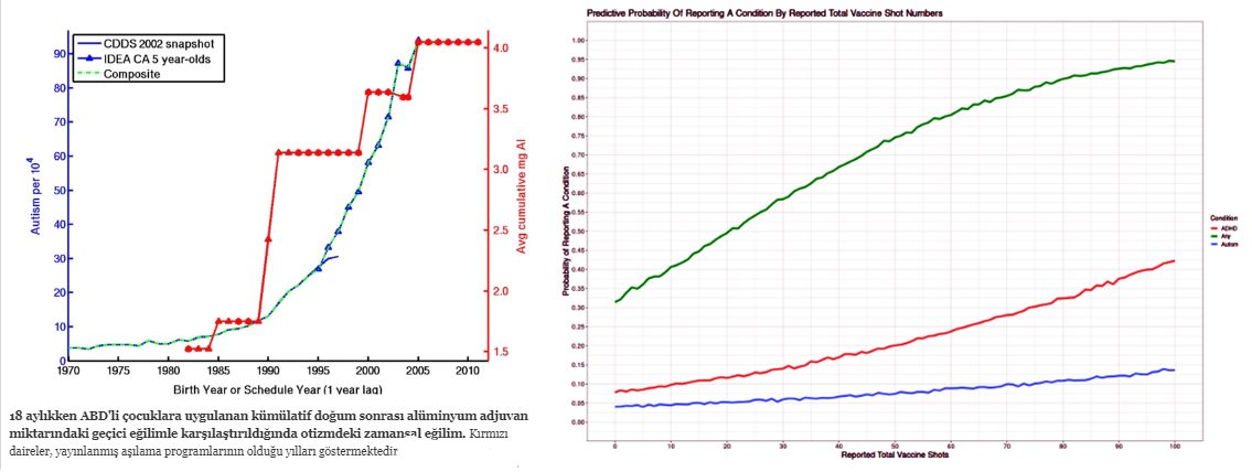 Otizm artışında çocukluk çağındaki aşılamalar arasında pozitif bir ilişki bulunduğu yönünde bir başka raporda ise; “Regresyon analizi ve aile geliri ve etnik köken kontrolü kullanılarak, 2000 ve 2001 yılları arasında her bir ABD eyaletinde önerilen aşıları olan çocukların oranı ile otizm (AUT) veya konuşma veya dil bozukluğu (SLI) prevalansı arasındaki ilişki belirlenmiştir. Pozitif ve istatistiksel olarak anlamlı bir ilişki bulundu. Suçlu civa başta olmak üzere aşılar olabileceğini göstermektedir” ifadelerine yer verildi… [ Kaynak; (9)]