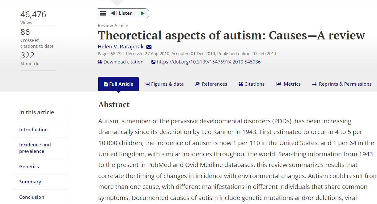 İşte size aşı / otizm bağlantısını destekleyen 214 araştırma makalesi