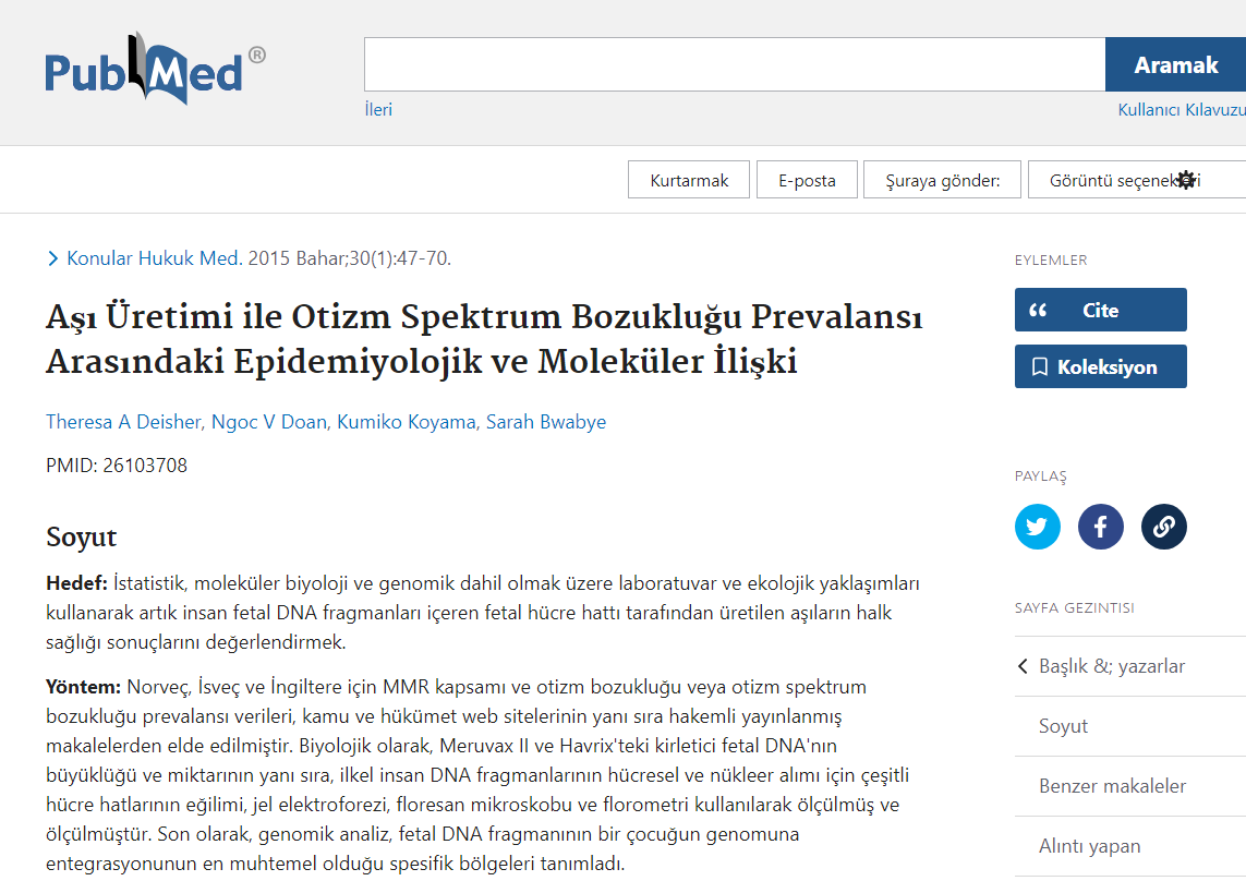 “Bu çalışmalar, thimerosal içeren aşılardan ve nörogelişimsel bozukluklardan artan cıva dozları ile kızamık içeren aşılar ve ciddi nörolojik bozukluklar arasında doğrudan bir ilişki olduğunu gösteren biyolojik akla yatkınlık ve epidemiyolojik kanıtlar olduğunu göstermiştir..” [Kaynak: (7) (8)]