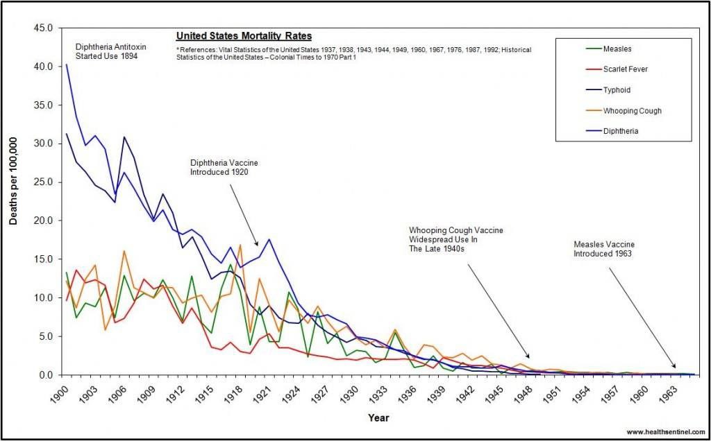 “Sonuç; hastalıkların neden olduğu morbidite ve mortalitedeki en büyük tarihsel düşüş, modern antibiyotik ve aşı çağında değil, temiz su, doğru beslenme ve sanitasyon programının kullanılmasından sonra yaşanır.” The Journal of Pediatrics, Aralık 1999 [Kaynak: (19)]