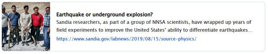 “Sandia researchers, as part of a group of NNSA scientists, have wrapped up years of field experiments to improve the United States’ ability to differentiate earthquakes from underground explosions, key knowledge needed to advance the nation’s monitoring and verification capabilities for detecting underground nuclear explosions” Türkçesi: Bir grup NNSA bilim insanının parçası olan Sandia araştırmacıları, ABD’nin depremleri yer altı patlamalarından ayırt etme yeteneğini geliştirmek için yıllarca süren saha deneylerini tamamladı.