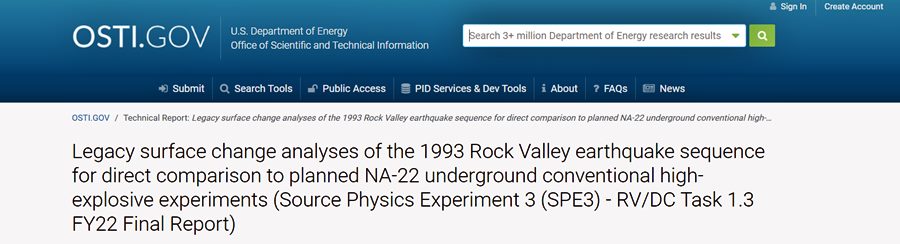Türkçesi: Planlanan NA-22 yeraltı konvansiyonel yüksek patlayıcı deneyleriyle doğrudan karşılaştırma için 1993 Rock Valley deprem dizisinin eski yüzey değişimi analizleri (Kaynak Physics Experiment 3 (SPE3) – RV/DC Task 1.3 FY22 Final Report))