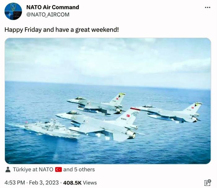 NATO Hava Komutanlığı, 3 Şubat’ta twitter hesabından Türkiye’yi hedef göstermiş ve dalga geçer gibi Türkiye’ye muhteşem bir haftasonu dilemişti…Felaket haftasonu gerçekleşti.