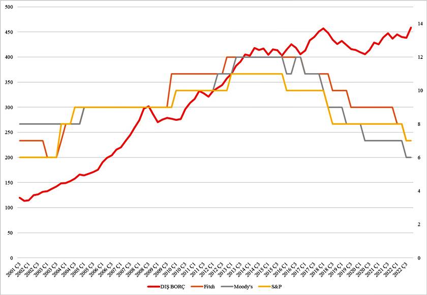 Acaba Türkiye’nin borçları ile derecelendirme kuruluşlarının puanlaması nasıl bir seyir izlemiştir?