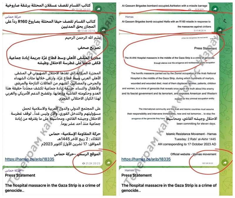 Hamas, El-Ehli hastanesi vurulmadan önce Hayfa’ya roket fırlatıldığını duyurmuştu. Fakat Hayfa’ya roket düşmedi ve roketin fırlatılmasından birkaç dakika sonra hastane vuruldu. Hamasçılar Hayfa’ya fırlattıkları, ama düşmeyen roket hakkında hiçbir açıklama yapmadı. Yine Hamas, El-Cezire’nin canlı yayınında Gazze’den fırlatılan roketlerden birinin İsrail’e ulaşamadan havada yandığı ve düşüşe geçtiği, ardından da hastanede patlama olduğunu gösteren görüntü hakkında da açıklama yapmadı. Hamas taraftarları, hakikati aramadıkları, hatta merak da etmedikleri için El-Ehli hastanesini İsrail’in vurduğu propagandasına abanıyor.