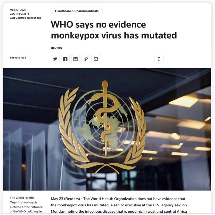 Özellikle tıpla, hekimlikte alakasız hatta ağır insanlık suçlarından yargılanan suçlularında içerisinde bulunduğu görevlilerden oluşan Dünya Sağlık ÖRGÜT’ü (DSÖ), maymun çiçeği virüsünün mutasyona uğradığına dair sıfır kanıt olduğunu doğruladığında hemde !!