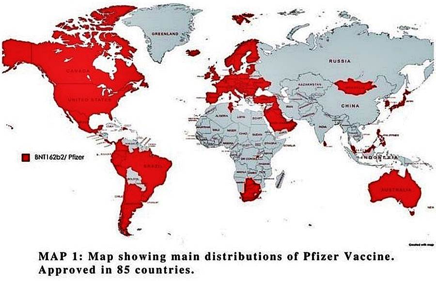 Maymun çiçeği vakalarının bildirildiği Pfizer Covid-19 enjeksiyonunun ağırlıklı olarak uygulandığı ülkeleri gösteren aşağıdaki harita bakın!