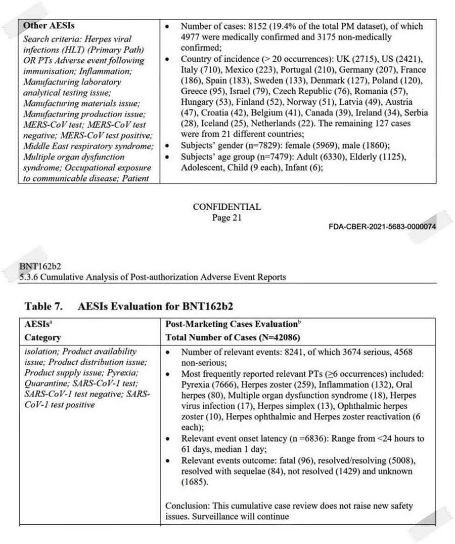 FDA’nın 2022’de Mahkeme kararıyla yayınlamaya zorlandığı gizli Pfizer belgelerinde ortaya çıktı..