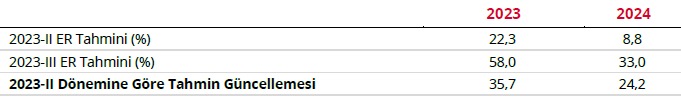 Bu tahmin raporunun üzerinden iki buçuk ay geçmiş. İki buçuk ay sonra 2023-3 sayılı enflasyon raporu tahmininde ise, 2023 enflasyonu %58 diyor, 2024 enflasyonu %33 diyor. Fark 2023’ün %35,7; 2024’ün %yirmi 24,2.