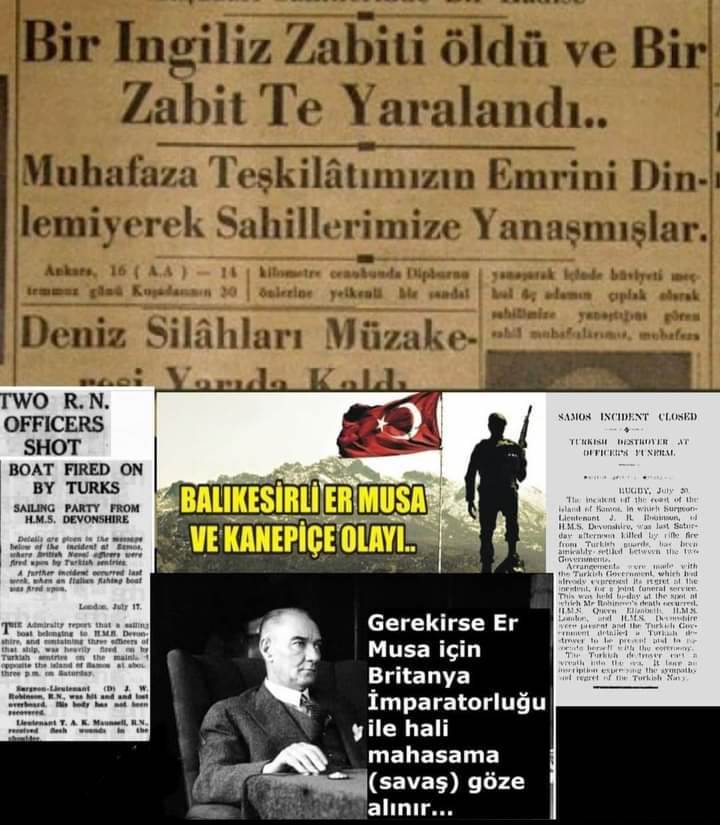 Türkiye Cumhuriyeti’ni kuran, ulusumuzu çağdaş, uygar ve bağımsız bir devlet durumuna getiren Ulu Önder Atatürk, Balıkesirli Er Musa için İngiliz Emperyalizmi ile savaşı göze almış, izlediği saygın devlet adamı politikasıyla emperyalizme meydan okumuş ve geri adım attırmıştır.