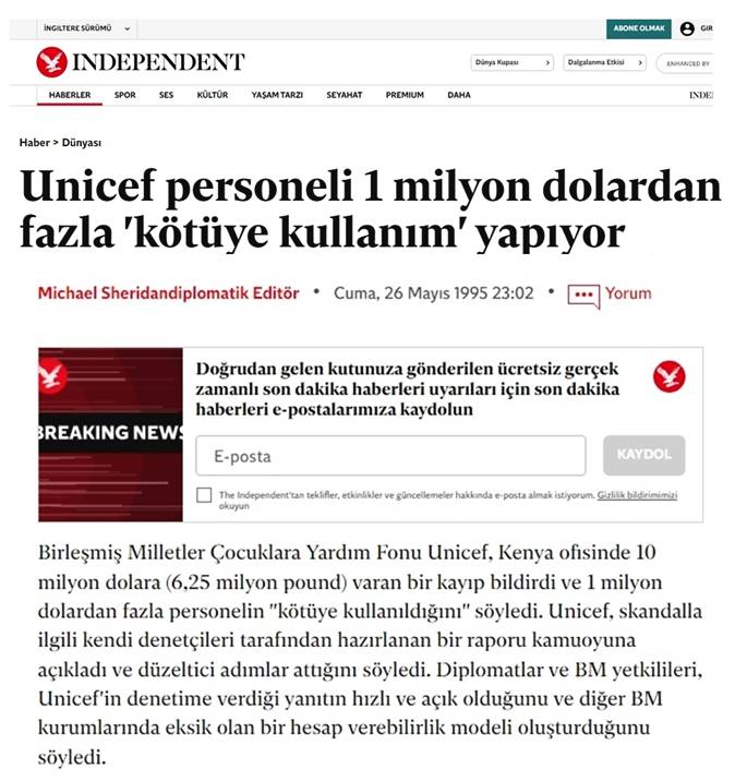 Bunun gibi bilgilere detaylı olarak birkaç seneye kadar ulaşılıyordu. Haiti depremi sonrası UNICEF ve Clinton Vakfı’nın şaibeleri çokça yazılıp çizildi. Şimdi çok zorlanıyorsunuz bulmakta. İnternetten tek tek süpürüyorlar. Size bir kaynak daha vereyim.